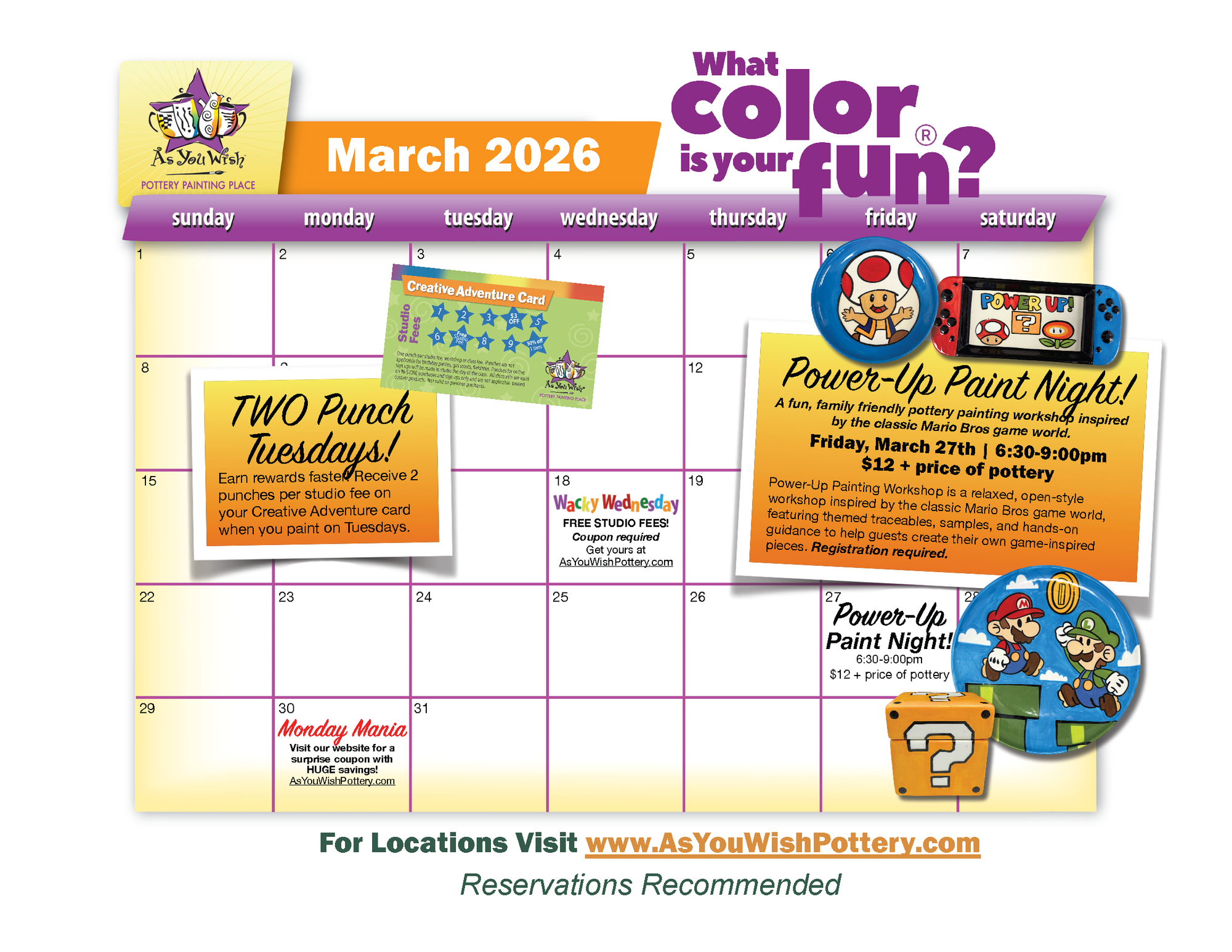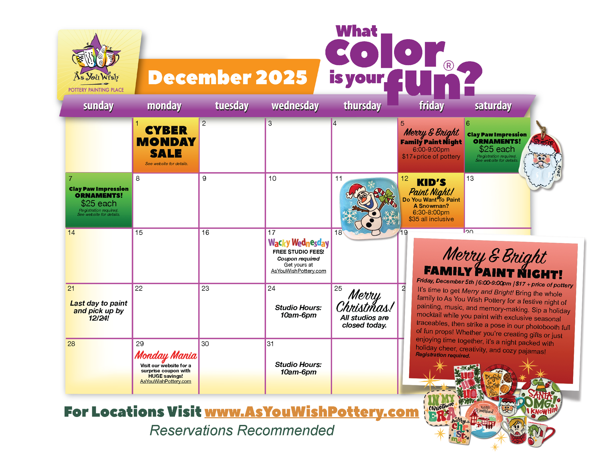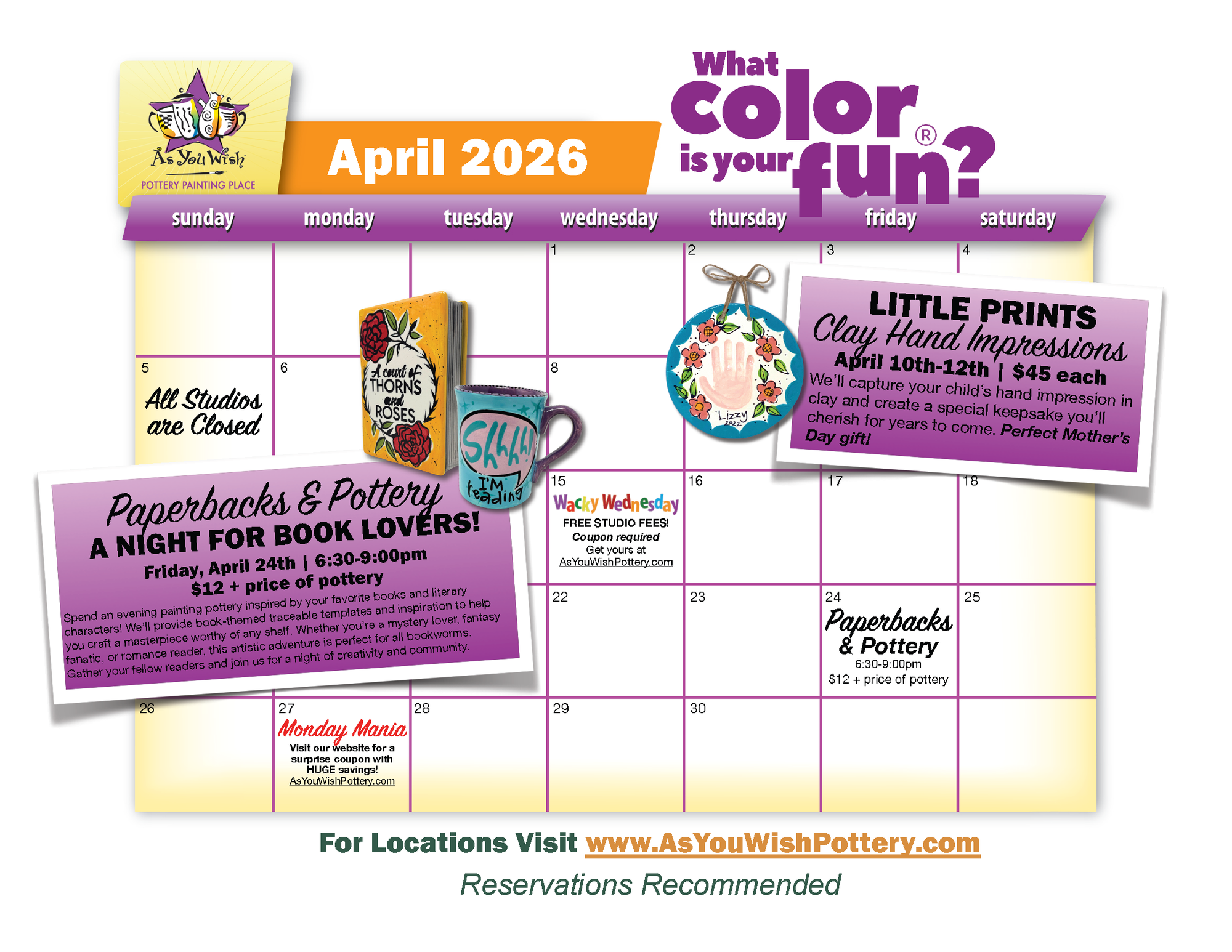 Check out our studio calendars to see upcoming classes, events, and special offers.