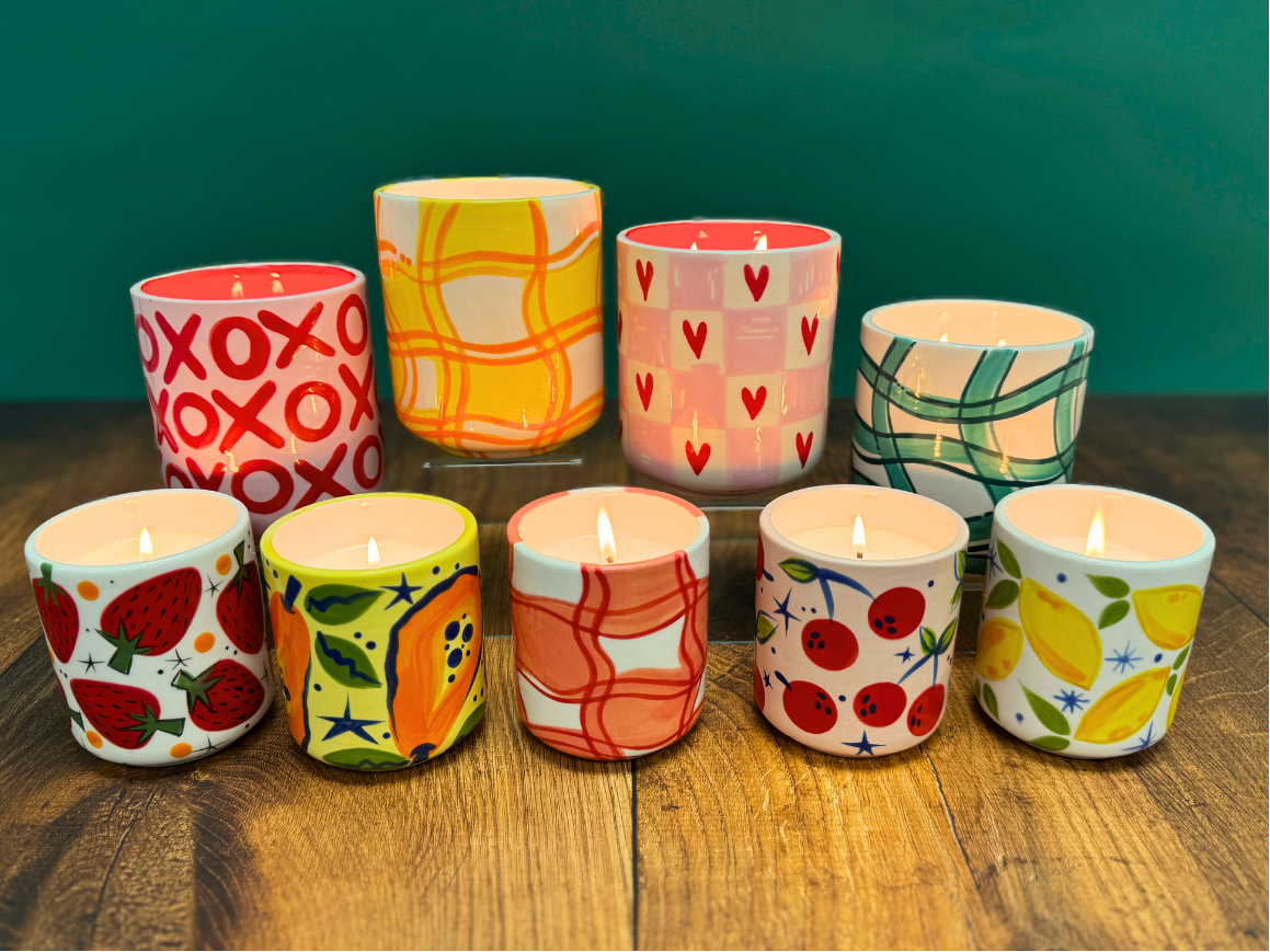 Once your painted piece is finished, you can complete the candle pour at any Candle Chemistry location.